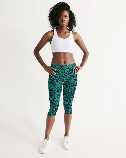 Print On Demand - Mid-Rise Yoga Capris - "Leopard Print" (Turquoise)