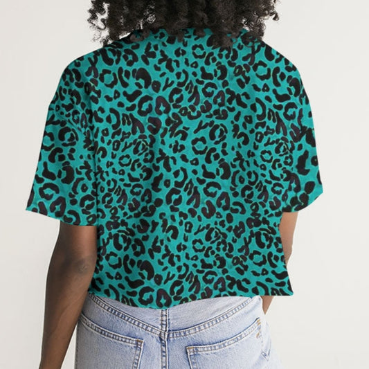 Print On Demand - French Terry Cropped Tee - "Leopard Print" (Turquoise)
