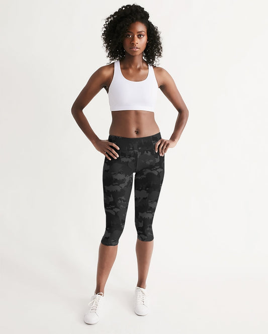Print On Demand - Mid-Rise Yoga Capris - "Buffoulage" (Black)