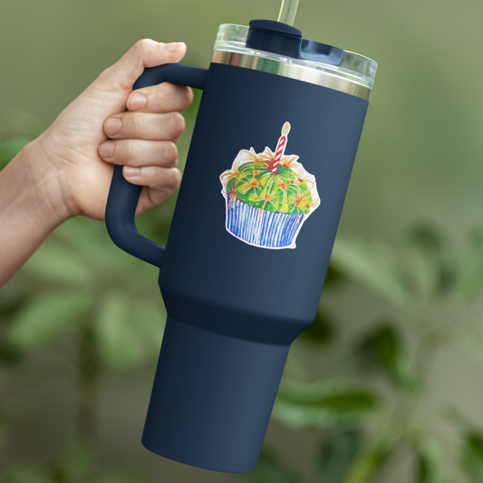 Vinyl Sticker/Decal - "Cactus Cupcake" (Blue)