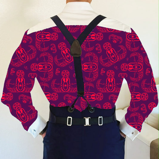 CUSTOM ORDER - Mess Dress Shirt (Men's) - "EOD Badges x 3" (Coral & Maroon)