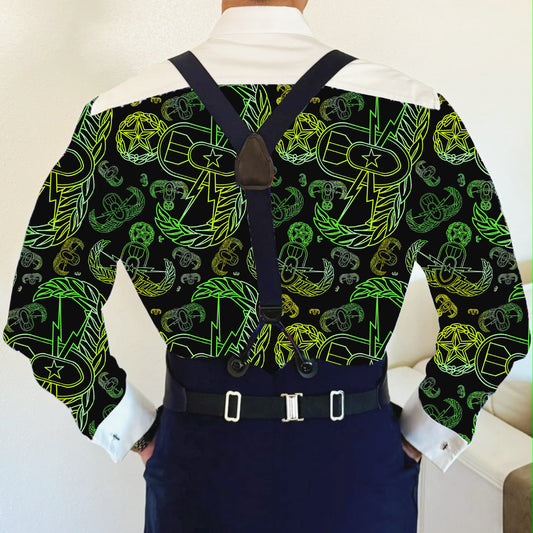 CUSTOM ORDER - Mess Dress Shirt (Men's) - "EOD Mixed Badges" (Lemon Lime on Black)
