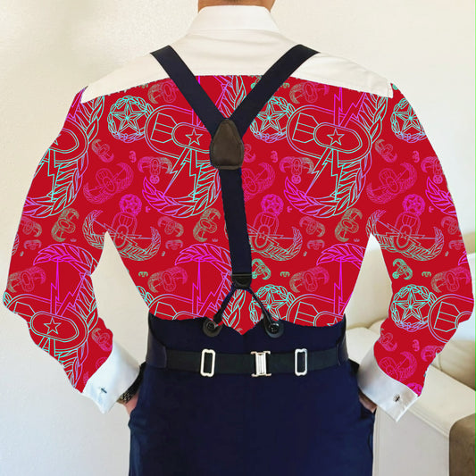 CUSTOM ORDER - Mess Dress Shirt (Men's) - "EOD Mixed Badges" (Rainbow on Red)