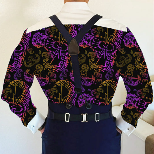 CUSTOM ORDER - Mess Dress Shirt (Men's) - "EOD Mixed Badges" (Yellow & Purple on Black)