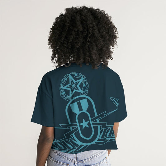 Print On Demand - French Terry Cropped Tee - "EOD Master Badge" (Teal)