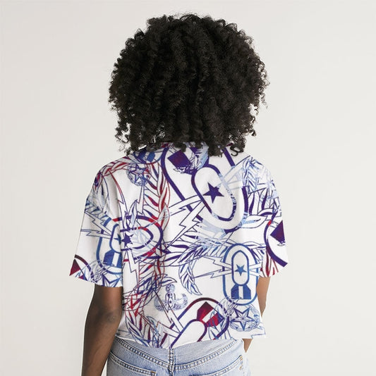 Print On Demand - French Terry Cropped Tee - "It's 5 o'clock Somewhere" (Red, White, & Blues)