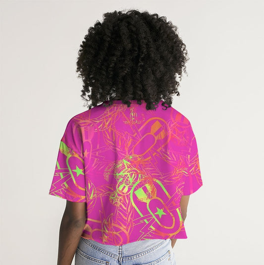 Print On Demand - French Terry Cropped Tee - "It's 5 o'clock Somewhere" (Neon Pink & Yellow)