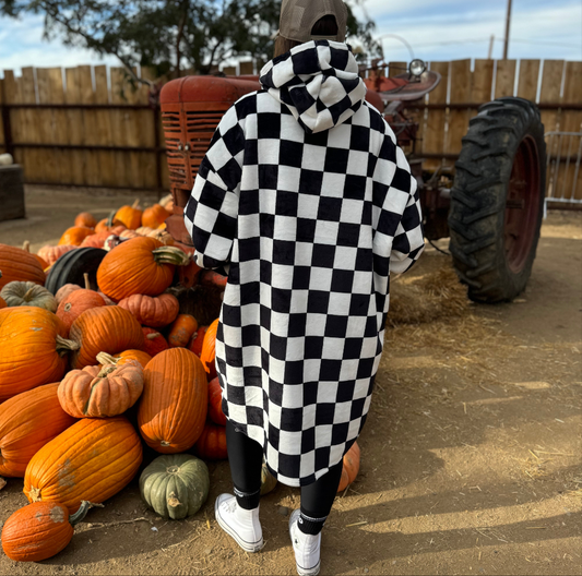 Oversized Sherpa Hooded Blanket (Adult) - "Checkered Flag"