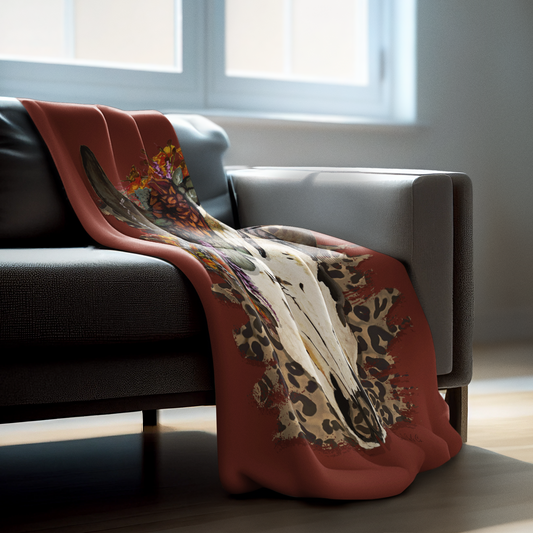 Plush Throw Blanket - "Gypsy Bison Skull"