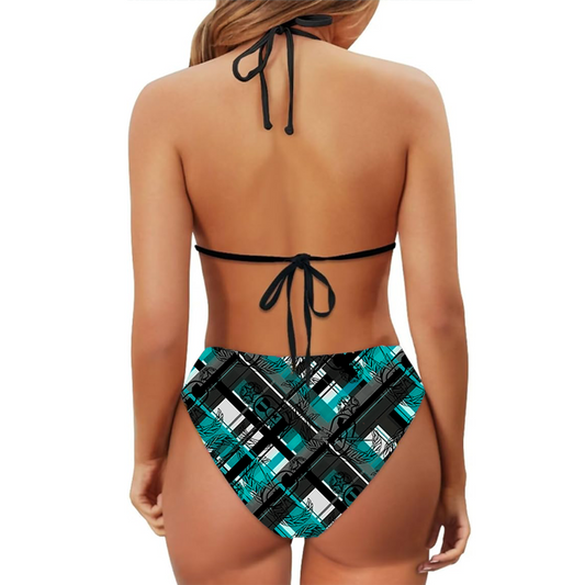Women's String Bikini Style 3 - "EOD Diagonal Plaid" (Grey on Teal)