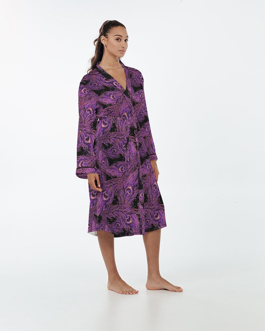 Print On Demand - Satin Robe (Women’s) - "Peacock Feathers" (Purple)