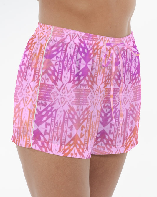 Print On Demand - Satin Pajama Shorts (Women’s) - "Aztec Ombre" (Orange to Pink)