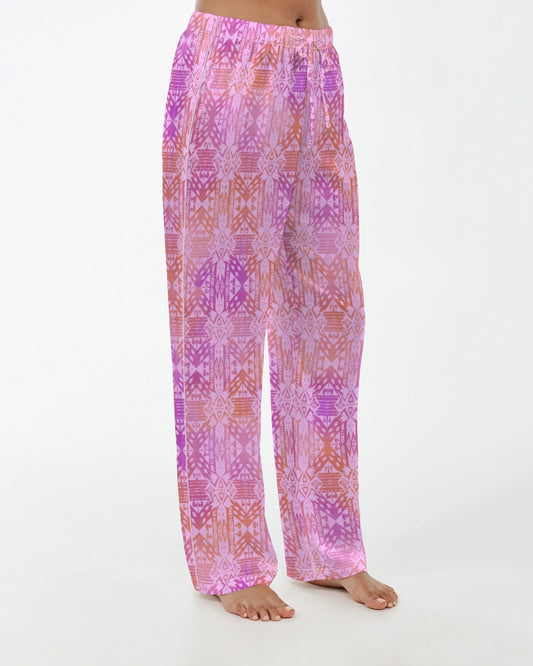 Print On Demand - Satin Pajama Pants (Women’s) - "Aztec Ombre" (Orange to Pink)