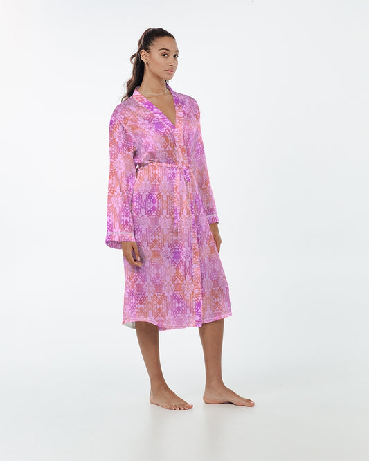 Print On Demand - Satin Robe (Women’s) - "Aztec Ombre" (Orange to Pink)