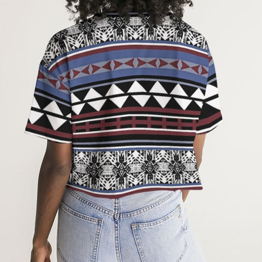 Print On Demand - French Terry Cropped Tee - "Maroon Aztec"