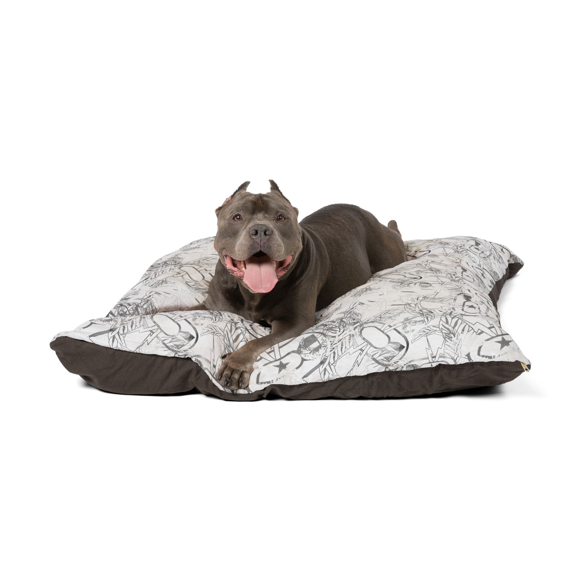 Want to keep that doggo off of your furniture? Give them a place of their own with our pet bed! This feather soft fleece exterior is printable on one side, and has a dark brown zippered back and a pillow insert. Your roving home security system will love to lounge about in their very own nest right at your feet.