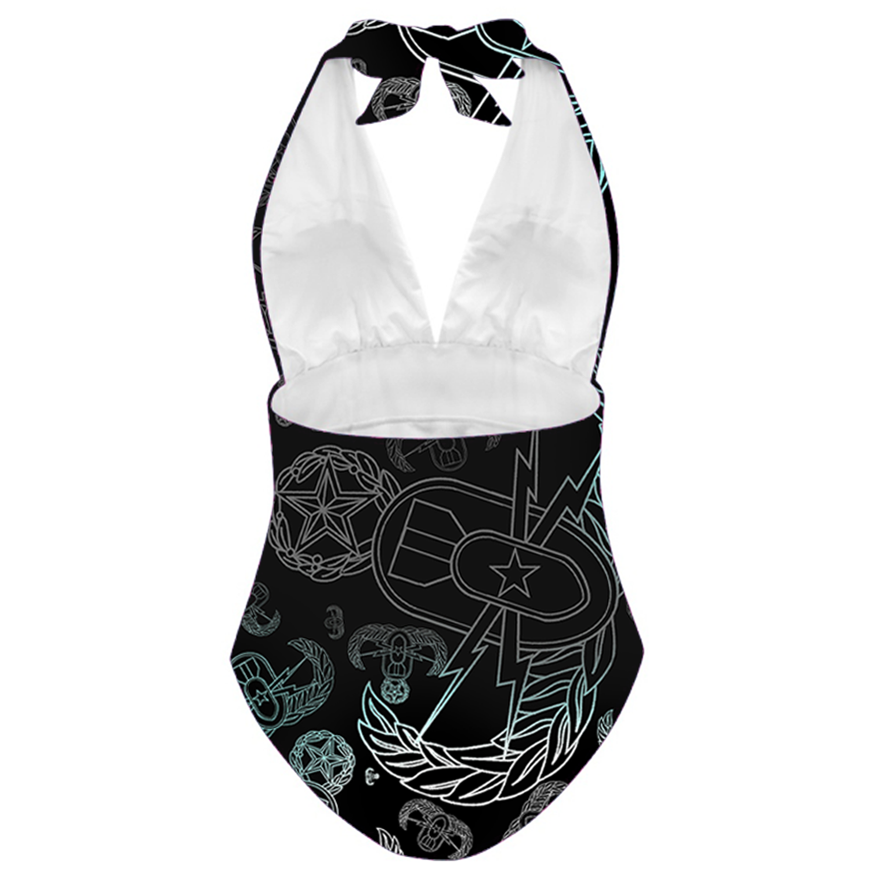 Women's Halter One-Piece - "EOD Mixed Badges" (Faded Turquoise)