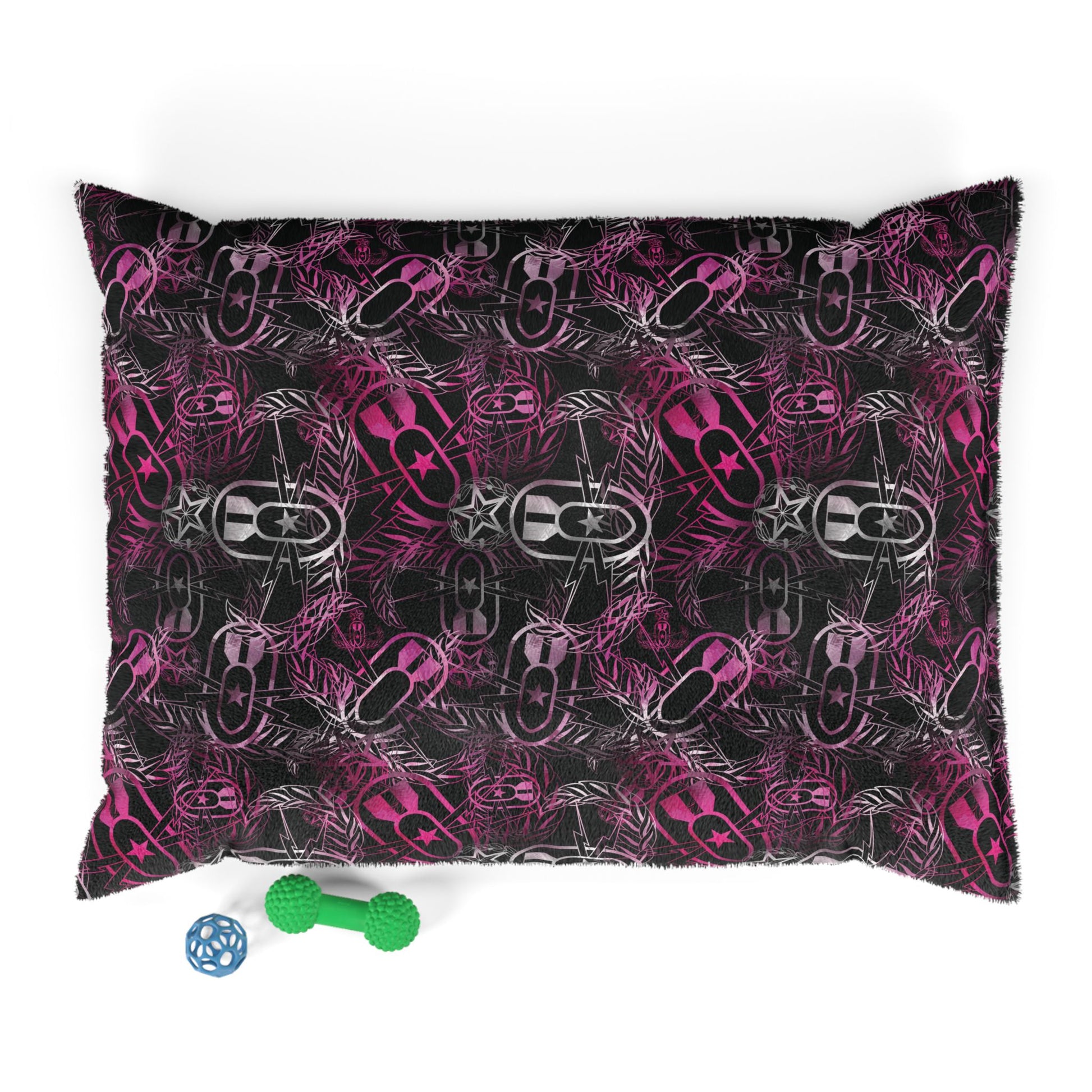 Want to keep that doggo off of your furniture? Give them a place of their own with our pet bed! This feather soft fleece exterior is printable on one side, and has a dark brown zippered back and a pillow insert. Your roving home security system will love to lounge about in their very own nest right at your feet.