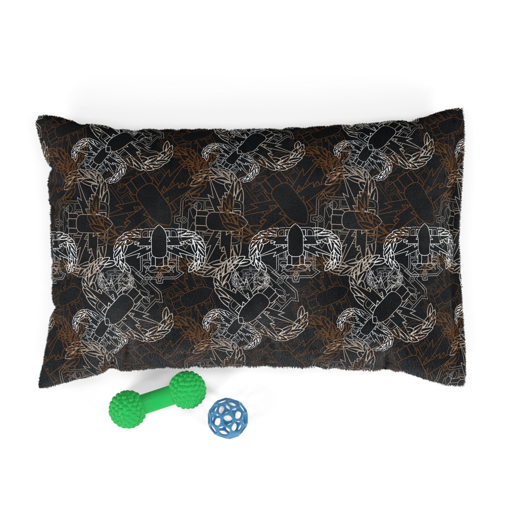Want to keep that doggo off of your furniture? Give them a place of their own with our pet bed! This feather soft fleece exterior is printable on one side, and has a dark brown zippered back and a pillow insert. Your roving home security system will love to lounge about in their very own nest right at your feet.