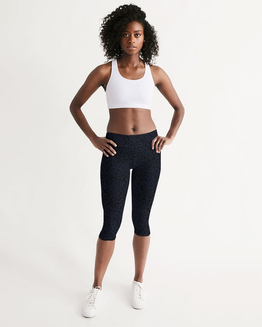 Print On Demand - Mid-Rise Yoga Capris - "Leopard Print" (Dark Blue)