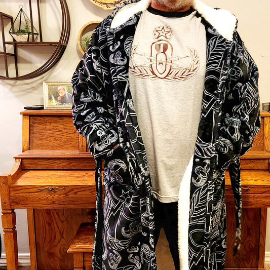 Oversized Sherpa Robe (Adult) - "EOD Mixed Badges" (Grey on Black)