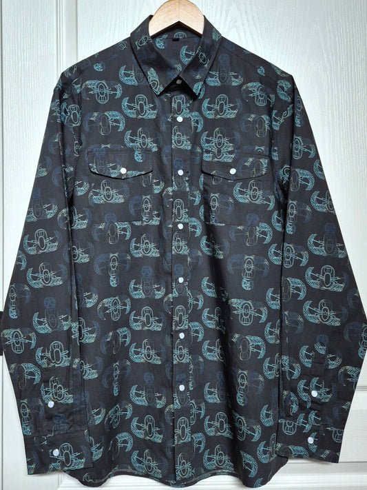PRE-ORDER - Pearl Snap Dress Shirt (Men's) - "EOD Badge Rows" (Burnt Edges)