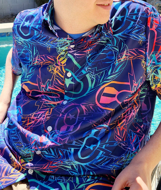 CUSTOM ORDER - Mess Dress Shirt (Men's) - "It's 5 o'clock Somewhere" (Yellow/Orange/Purple)