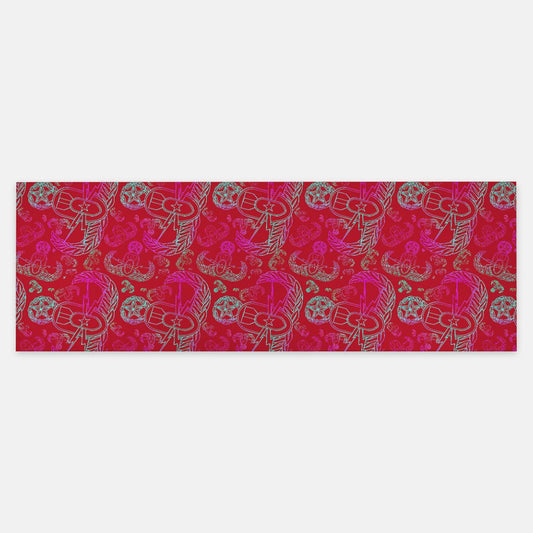 Print On Demand - Pashmina Scarf - "EOD Mixed Badges" (Multicolor on Red)