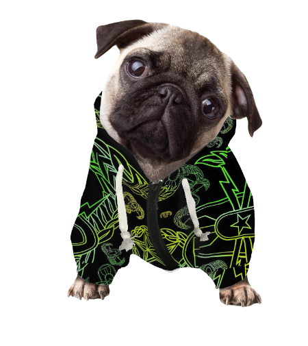 Dog Hoodie - "EOD Mixed Badges" (Lemon Lime on Black)