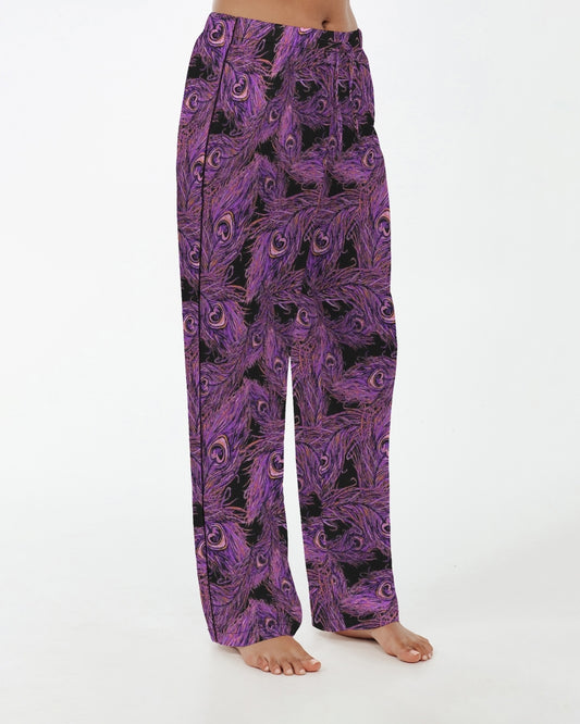 Print On Demand - Satin Pajama Pants (Women’s) - "Peacock Feathers" (Purple)