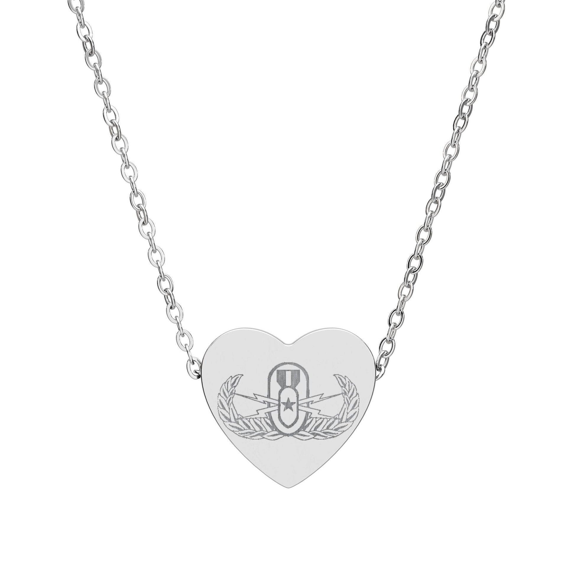 A small, Made-To-Order, engraved heart necklace crafted from surgical-grade stainless steel with a clean, contemporary silhouette. The tiny heart pendant carries a precise laser-etched badge for a subtle, lasting detail that won’t fade. Lightweight and hypoallergenic, it sits close to the collarbone and layers easily with other pieces. Available in natural steel or a PVD-coated finishes. Wear it every day to add a quiet, personal accent to casual and dressier looks alike.