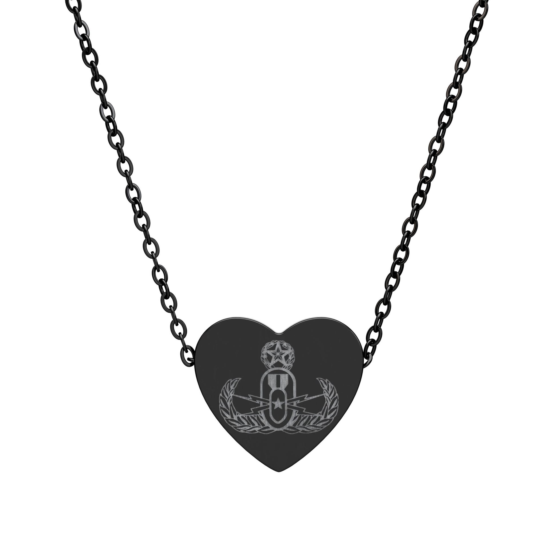 A small, Made-To-Order, engraved heart necklace crafted from surgical-grade stainless steel with a clean, contemporary silhouette. The tiny heart pendant carries a precise laser-etched badge for a subtle, lasting detail that won’t fade. Lightweight and hypoallergenic, it sits close to the collarbone and layers easily with other pieces. Available in natural steel or a PVD-coated finishes. Wear it every day to add a quiet, personal accent to casual and dressier looks alike.