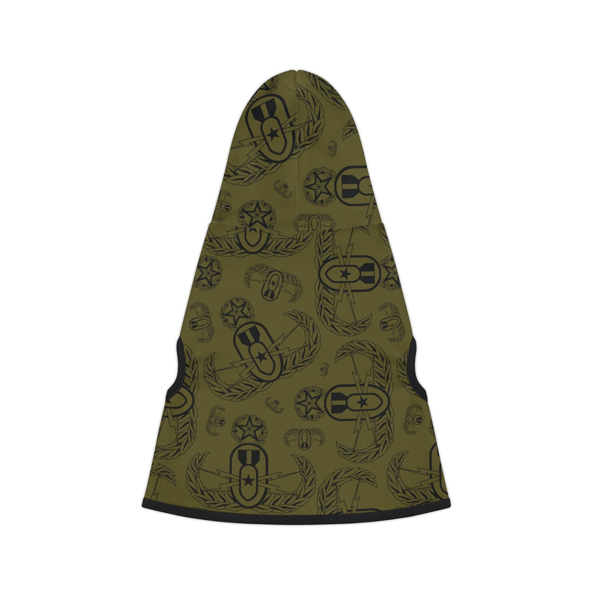 Pet Hoodie — "EOD Badges x 3" (Black on Olive)