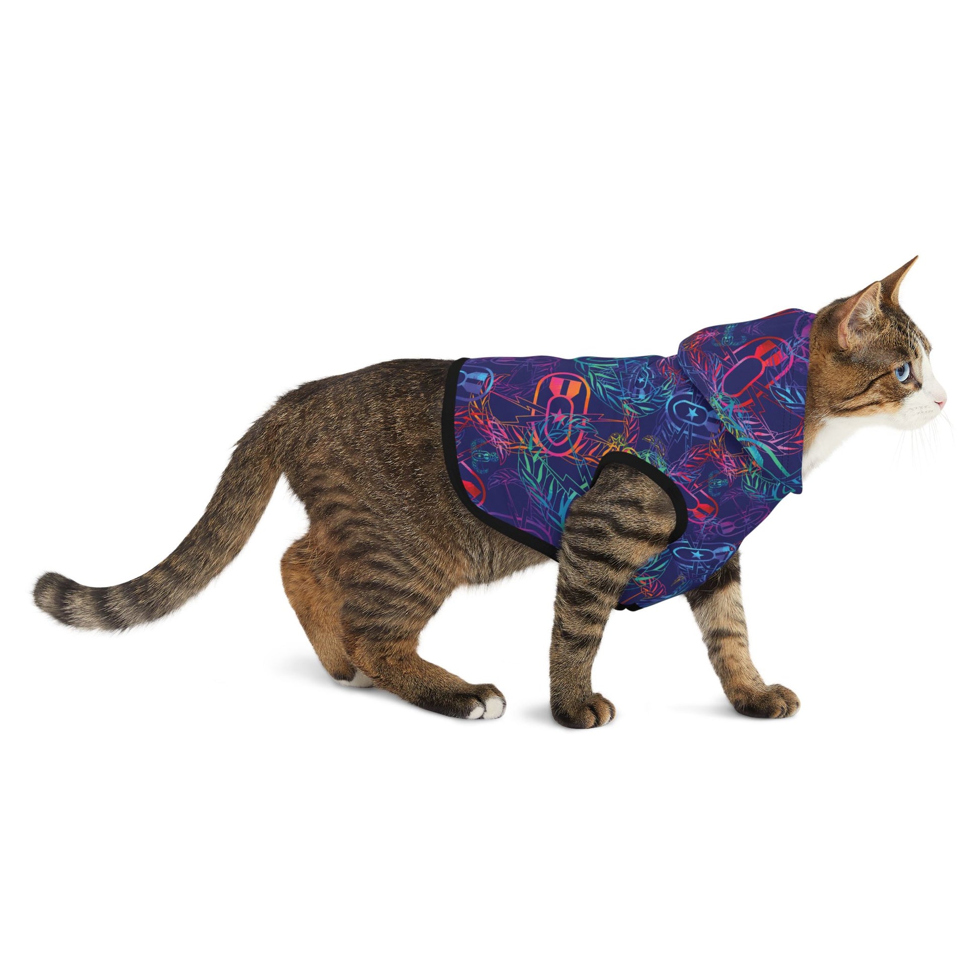 This lightweight pet hoodie brings quiet confidence and easy-care practicality to your dog or cat’s wardrobe. Tailored from soft, durable 100% polyester, it keeps its shape through play and washes while drying fast between adventures. The hood and clean-cut arm openings give a sleek, streamlined silhouette that layers well over harnesses. Assembled in the USA from globally sourced parts and available in seven sizes, this hoodie is made to fit snugly and move with your pet on daily walks, chilly mornings, or relaxed evenings at home.