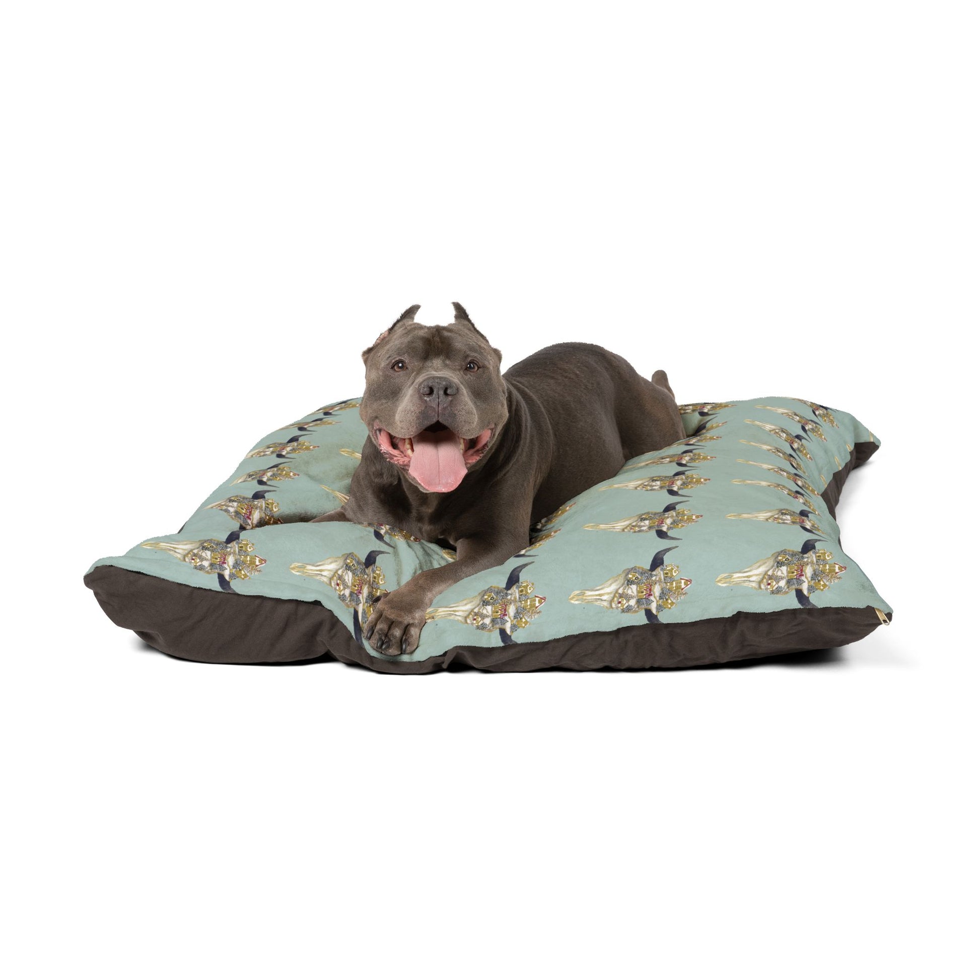 Want to keep that doggo off of your furniture? Give them a place of their own with our pet bed! This feather soft fleece exterior is printable on one side, and has a dark brown zippered back and a pillow insert. Your roving home security system will love to lounge about in their very own nest right at your feet.